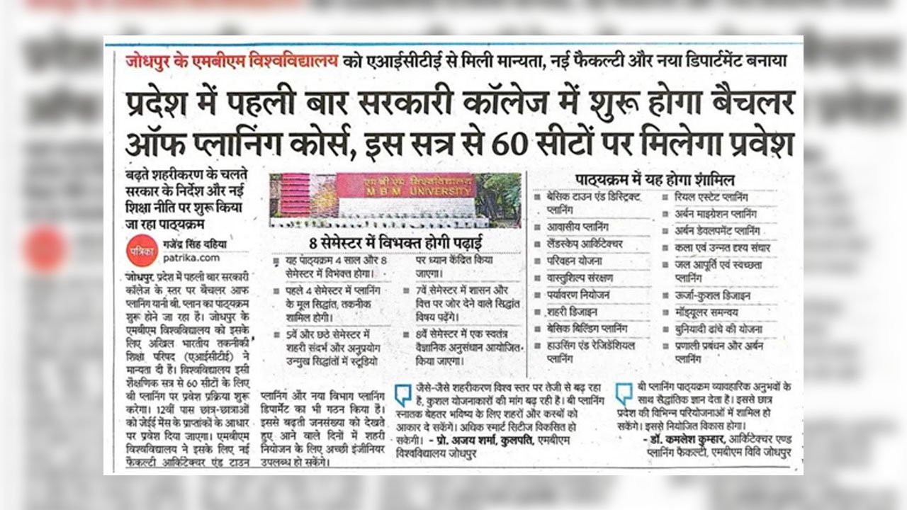 MBM Engineering College is one of the oldest engineering colleges in India. Established on 15th August 1951. The college boasts of its high academic standards, as it has has produced excellent quality engineers throughout, who have contributed immensely for the technological development of the country, including Space and Atomic Energy. It has now been converted into a Multi-Disciplinary University. by an act of Government of Rajasthan