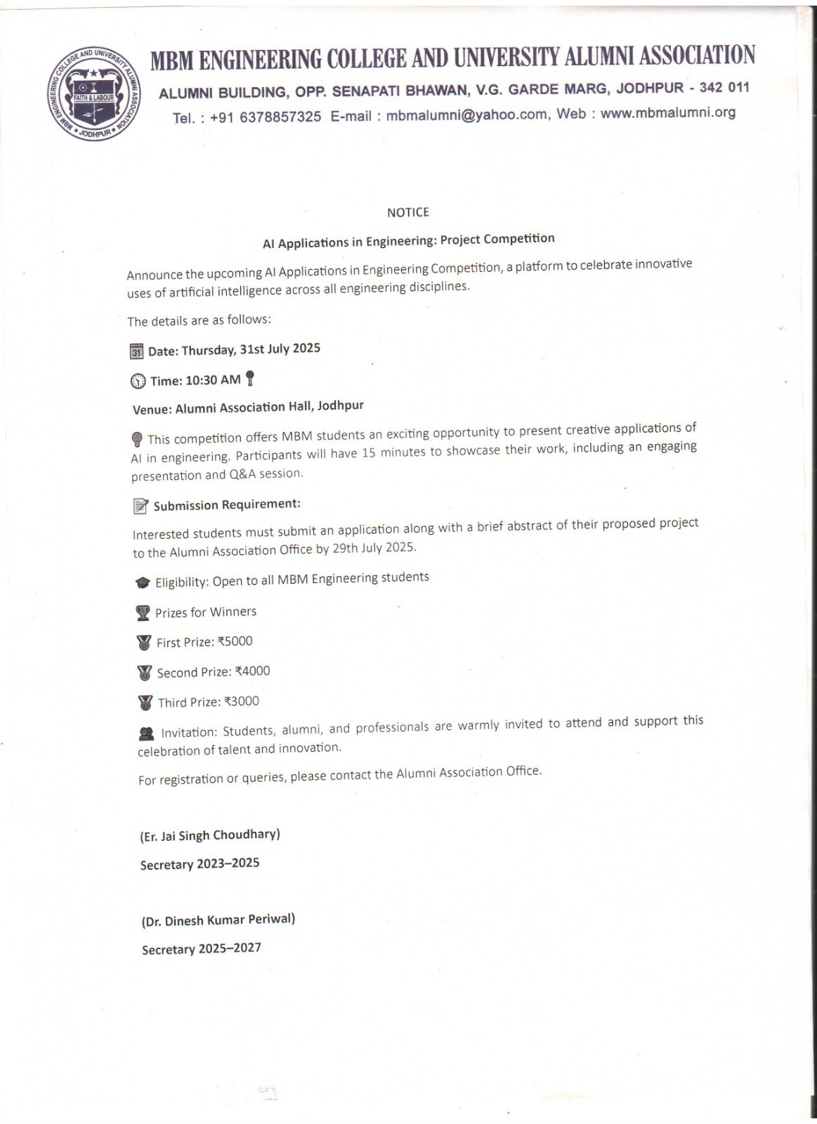 AI Applications in Engineering Project Competition